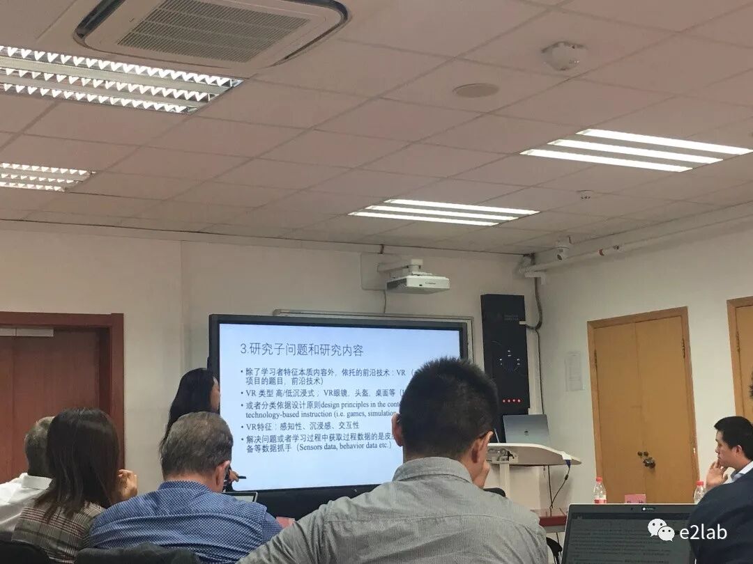 会议第三项为各个团队的研究介绍。首先顾小清老师向在座各位介绍了其带领的e2lab团队的主要研究领域以及研究兴趣,之后是幸福之花项目的介绍。接下来,来自其他各个院系的跨学科研究团队成员蒯曙光教授、王祖浩教授、陈金明教授、林立甲博士及贺樑教授依次介绍了自身所关注的与跨学科研究相关的领域及实践。